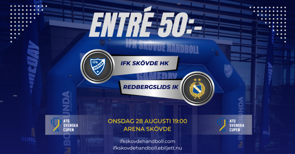 Första tävlingsmatchen hemma i Arena Skövde (säsongen 2024/25) spelas onsdag 28 augusti klockan 19:00.Vi välkomnar den klassiska handbollsföreningen Redbergslids IK till Skövde för match i ATG Svenska Cupen. Blå Torget (IFK:s mötesplats för evenemang & upplevelser) samt entréerna öppnar 17:30. Biljetter kostar endast 50:- och du köper dem redan idag via ifkskovdehandboll.ebiljett.nu. Framåt tillsammans, vi …