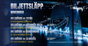 Biljetterna till novembers hemmamatcher i ATG Svenska cupen och Handbollsligan...